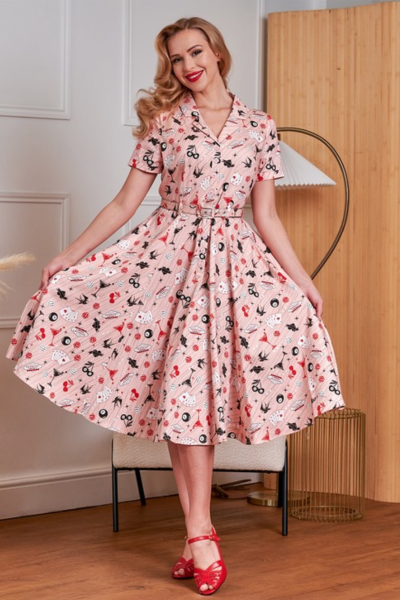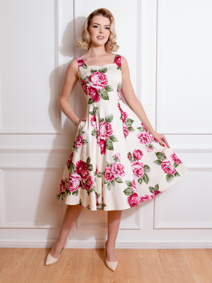 Such a flattering dress to wear and so comfortable. It also looks great with a petticoat underneath.