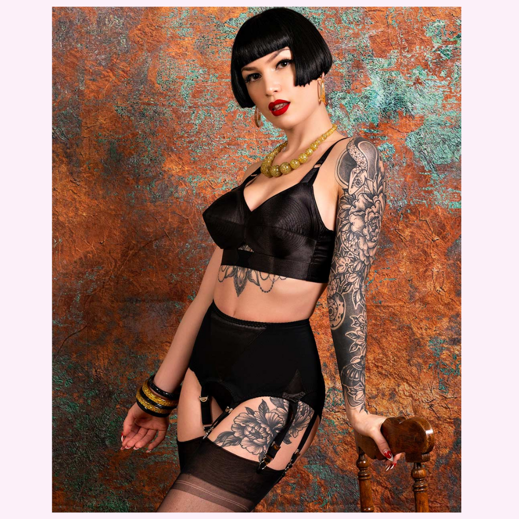 Although designed as part of our Maitresse Lingerie range, this belt matches perfectly with our other black satin lingerie ranges; including Glamour, 1940s and Retro. You're spoilt with choice of what to pair it with.