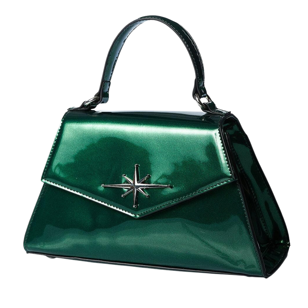 Crafted from luxurious faux leather with a gleaming green finish, it is adorned with a dramatic starburst ornament that is sure to draw attention.