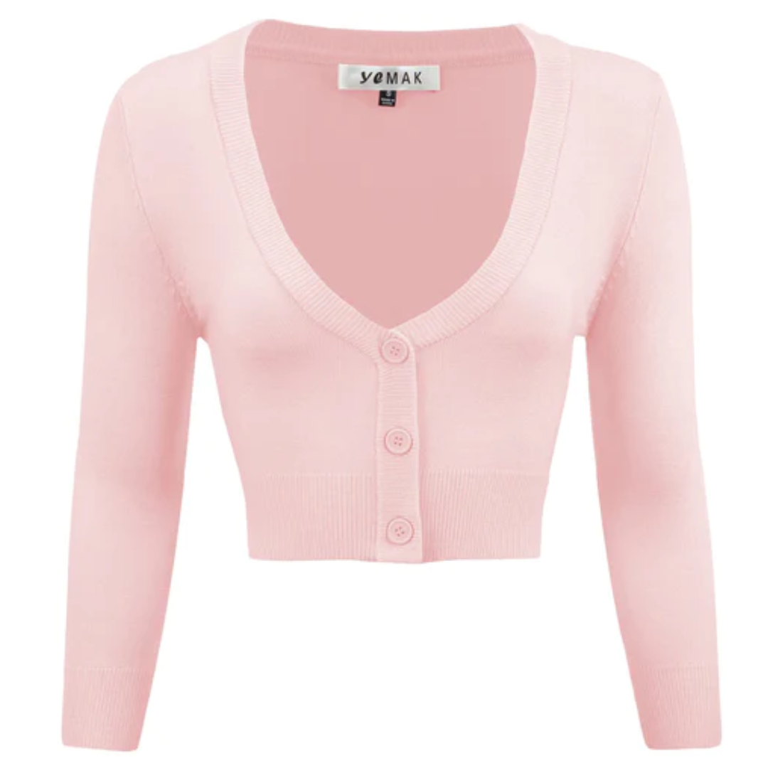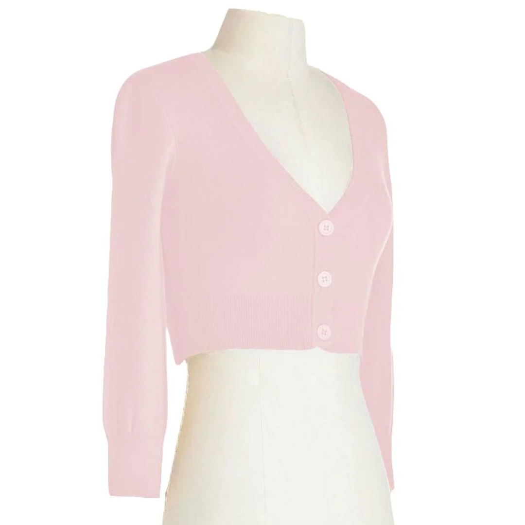 MAK Cropped Blush Retro Style 3/4 Sleeve Cardigan
