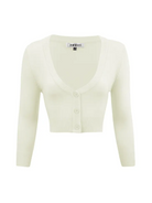 MAK Cropped Retro Style 3/4 Sleeve Cardigan - Ivory