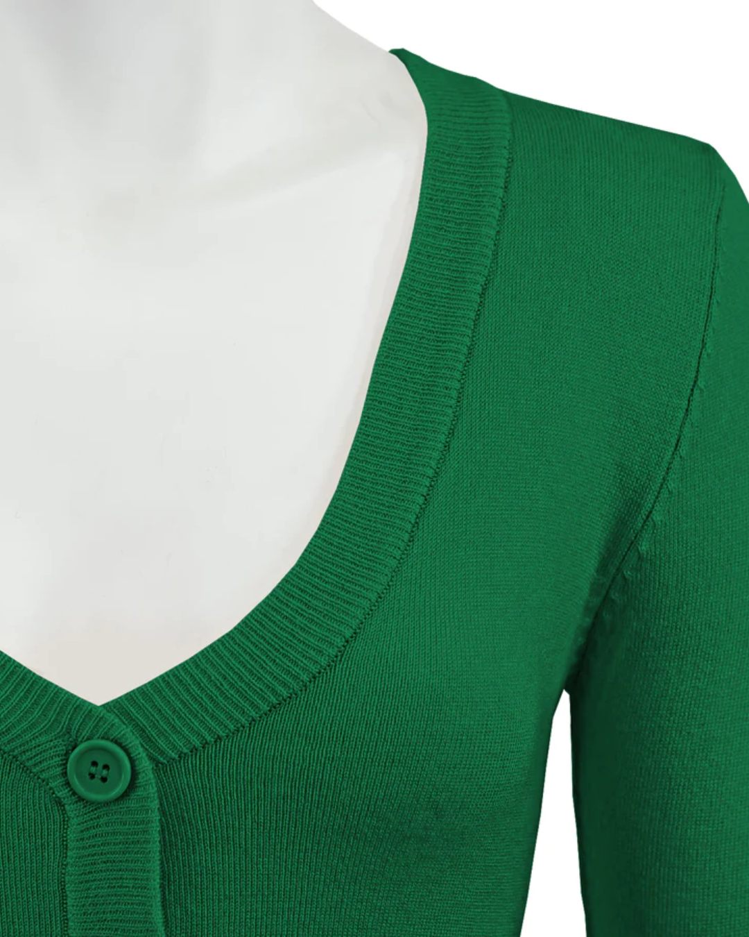 MAK Cropped Kelly Green 3/4 Sleeve Cardigan