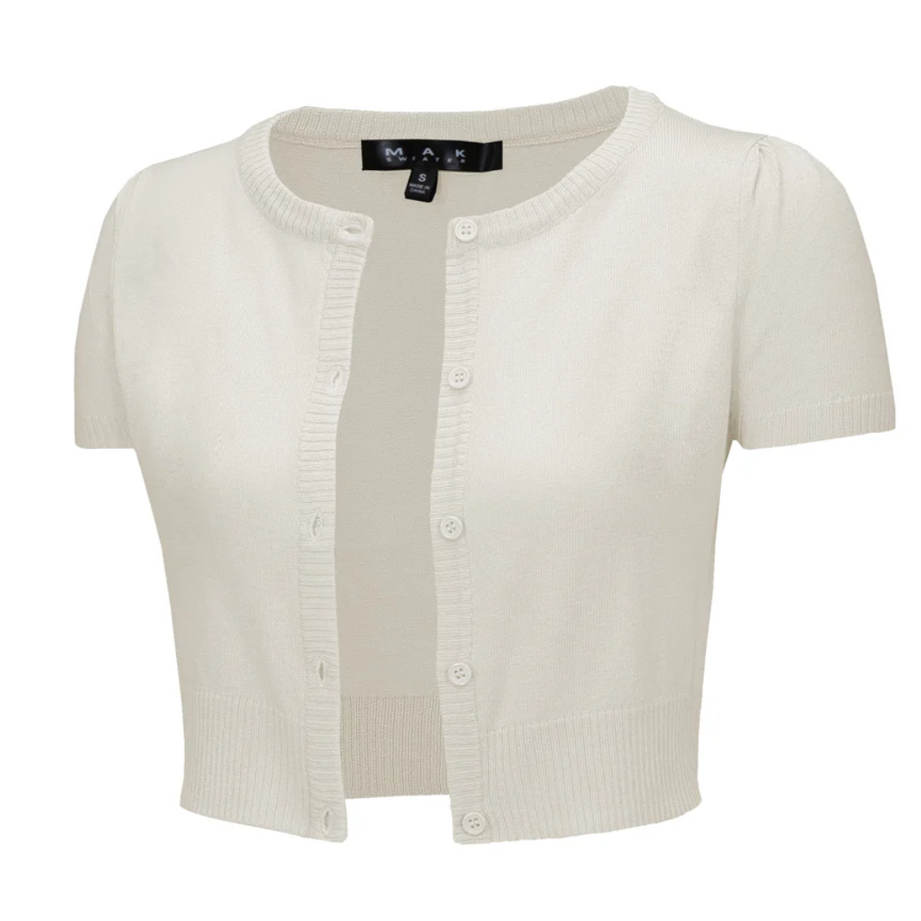 Elevate your vintage style with YEMAK's Short Sleeve Crewneck Knit Bolero!