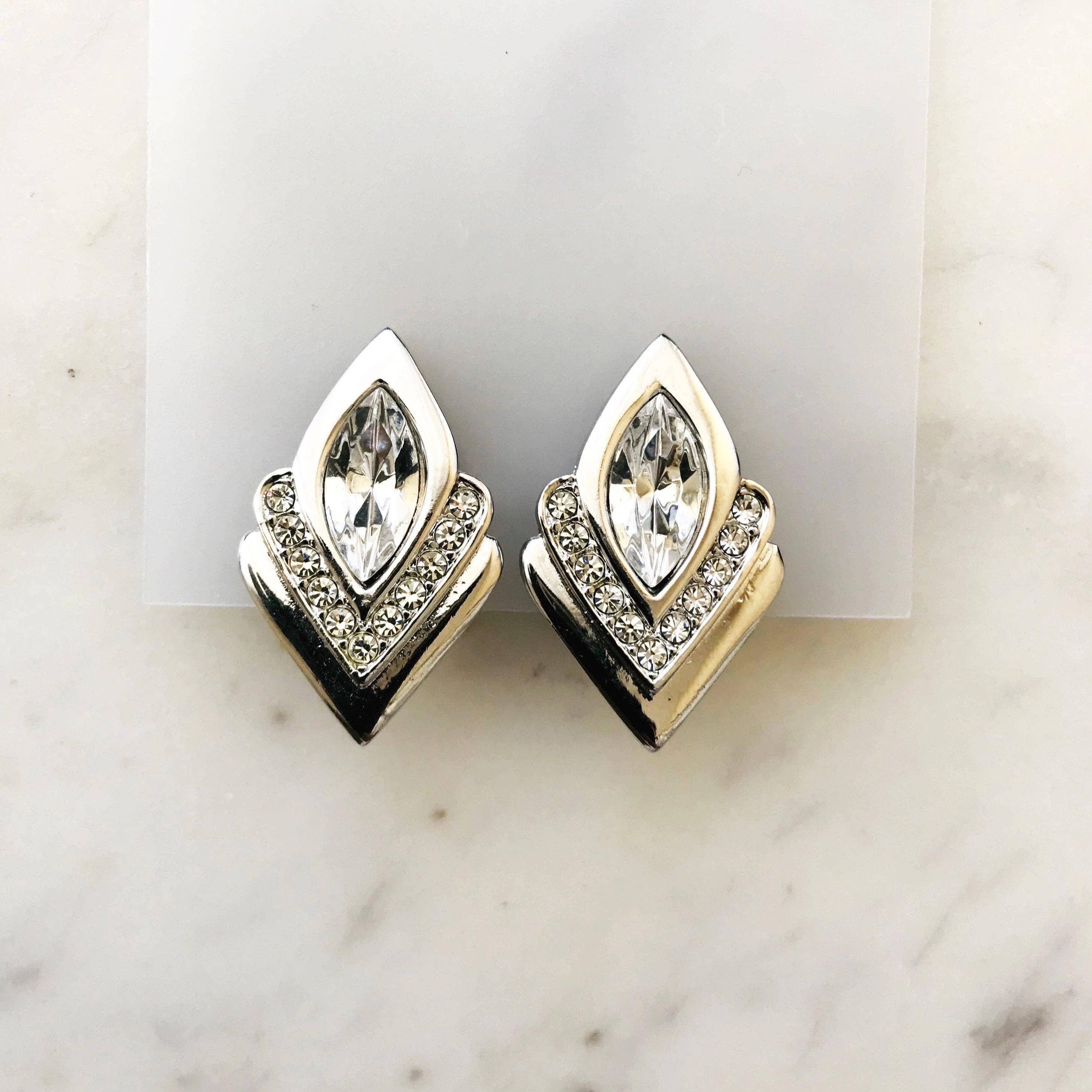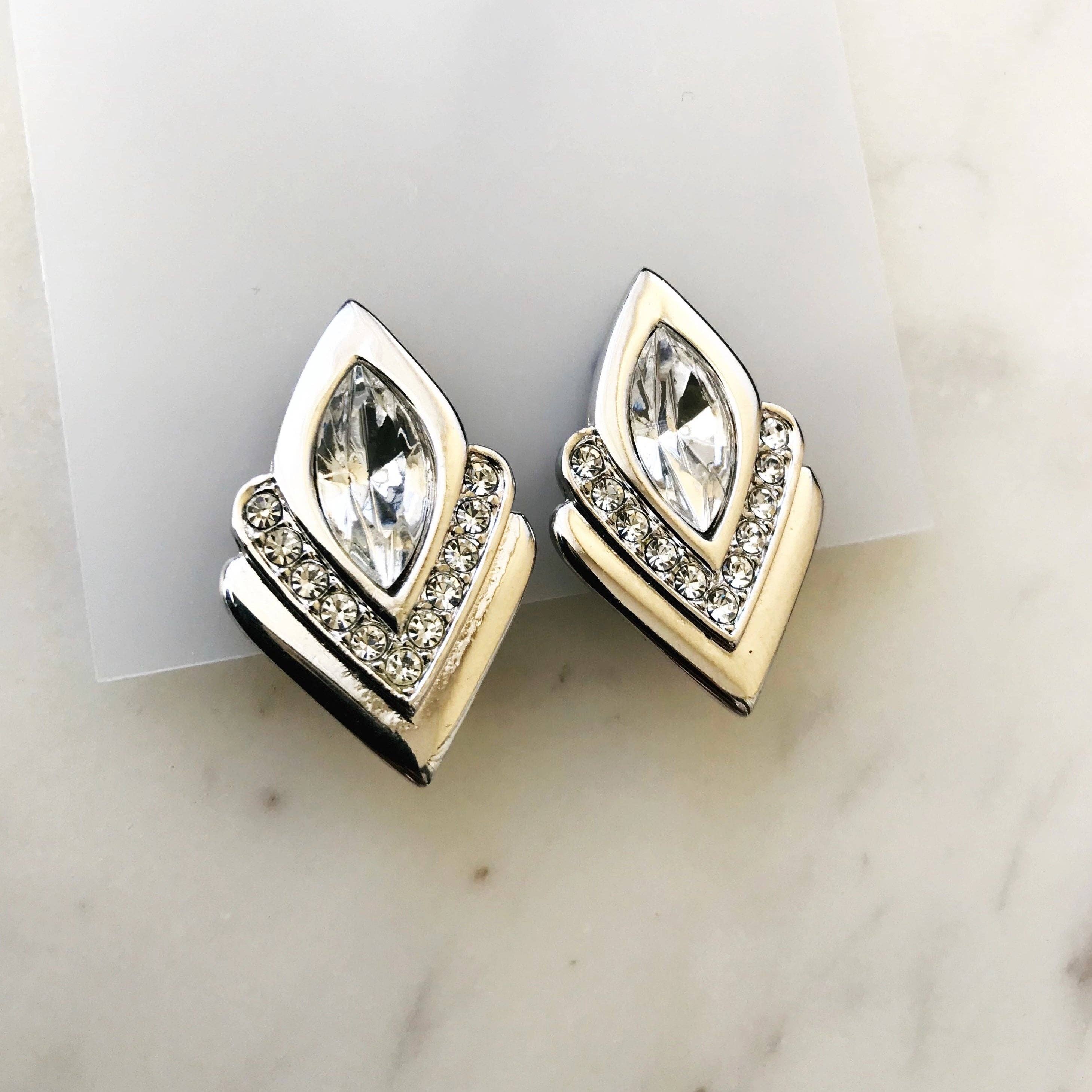 Harriet Art Deco Silver Crystal Clip On Earrings