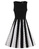 Judith Black Chiffon Polka Dot Black/White Skirt Retro Swing Dress