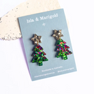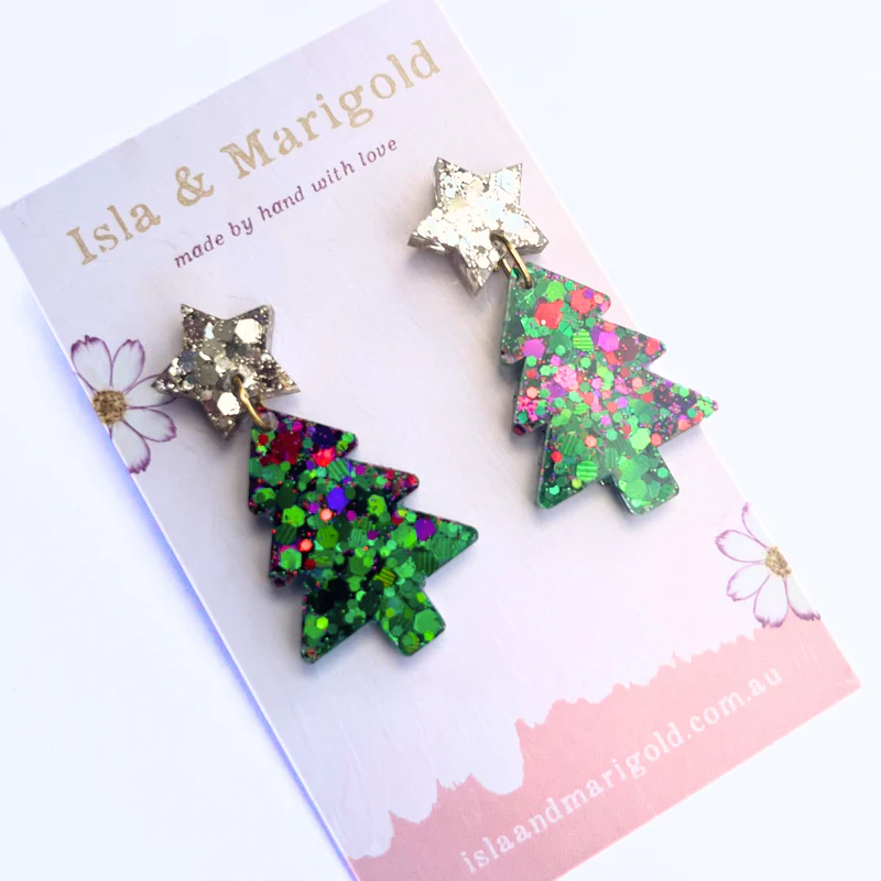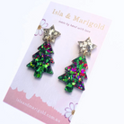 Green Red Sparkle Glitter Christmas Tree Earrings