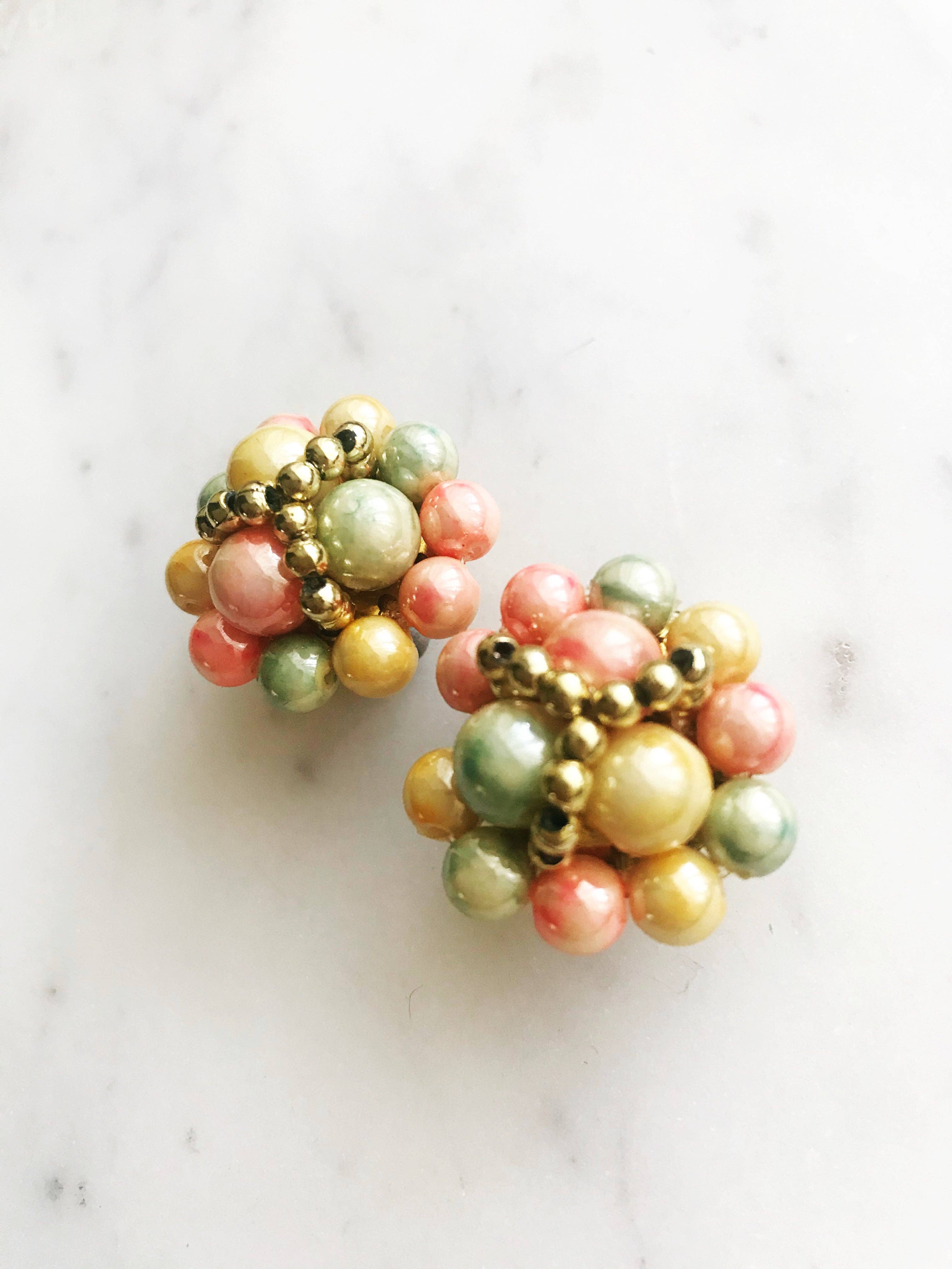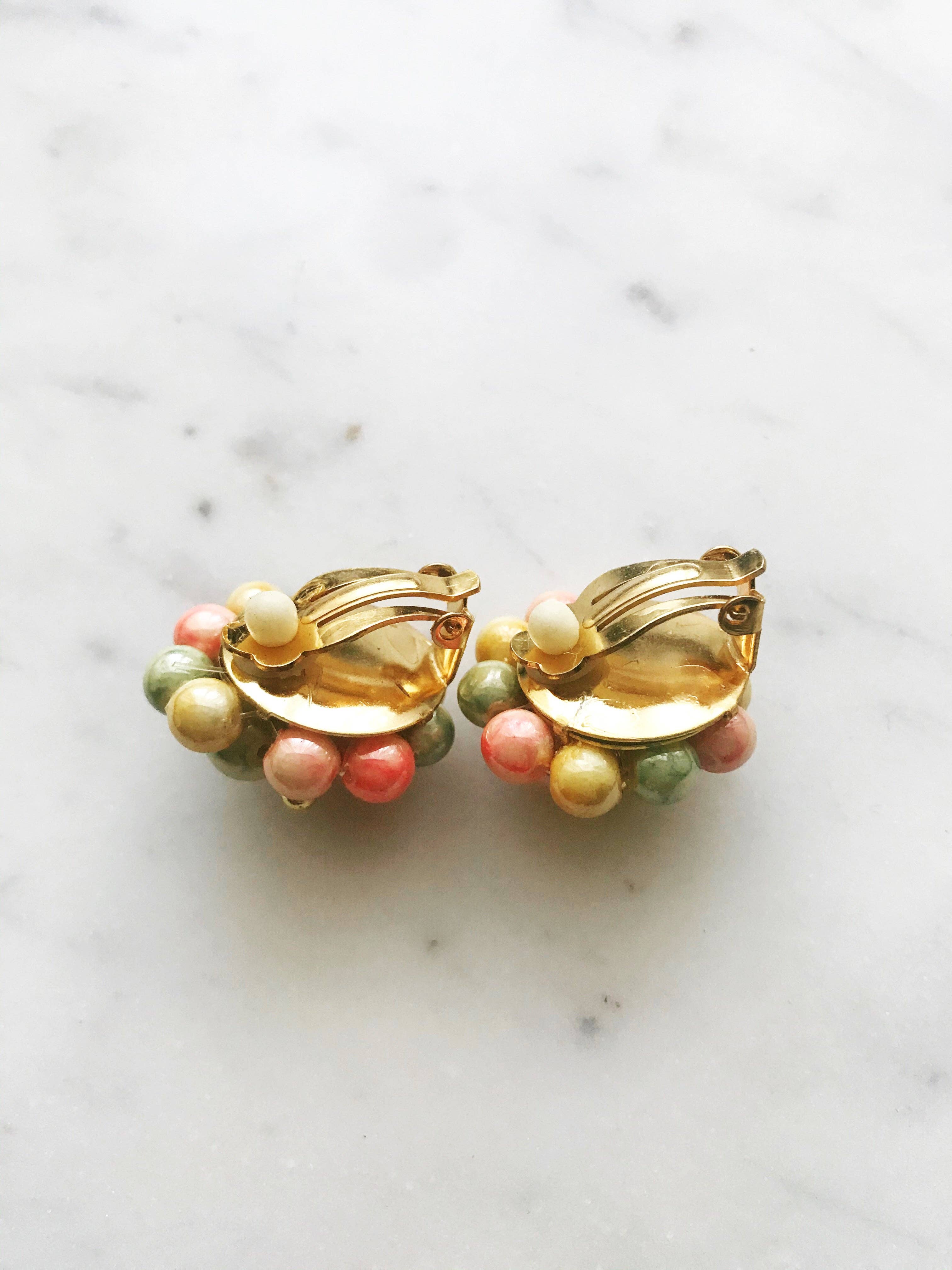 Vintage Beaded Clip On Earrings