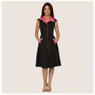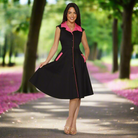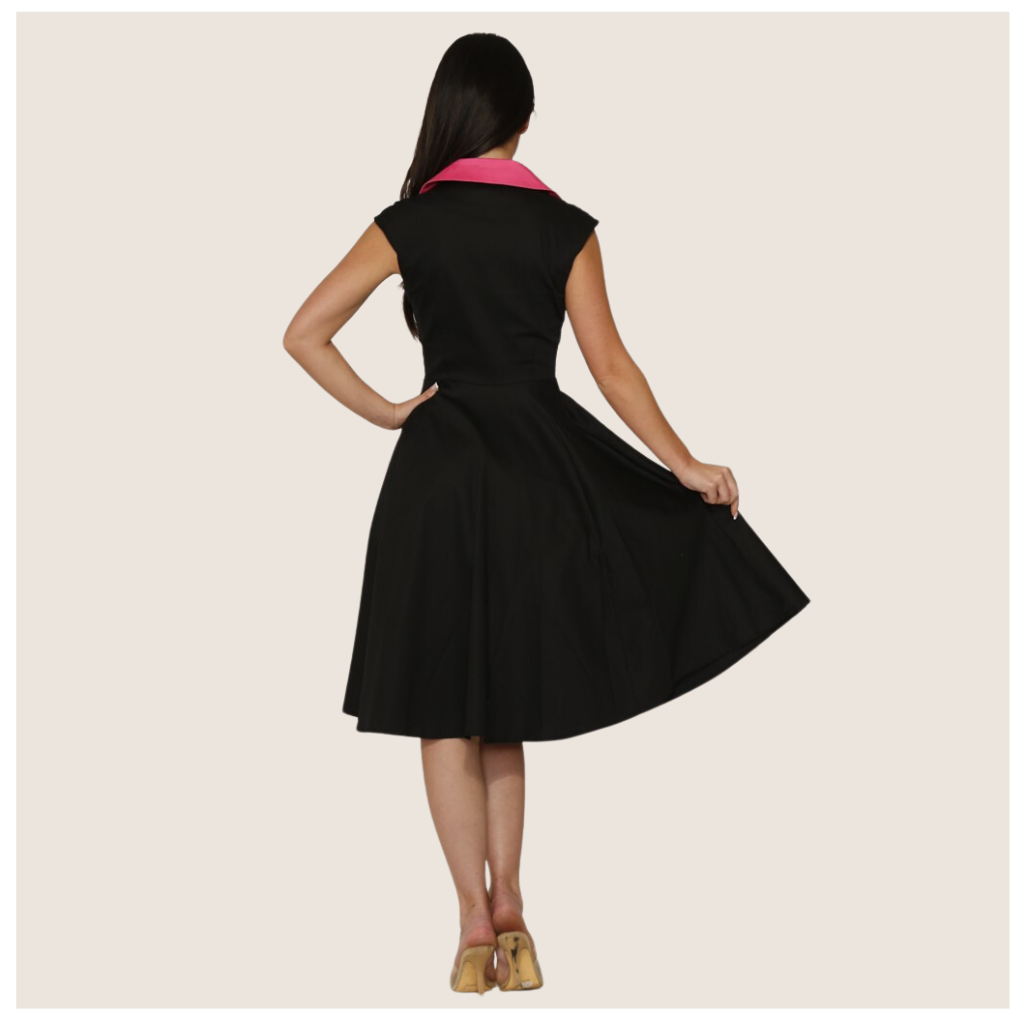 1950s Black with Pink Trim Vintage Swing Dress