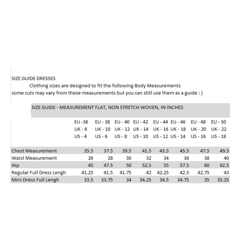 Please note:  Sizing is in UK sizing, please size up if you are in between sizing, or have a larger bust.