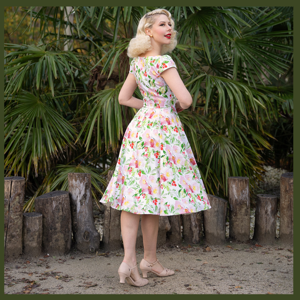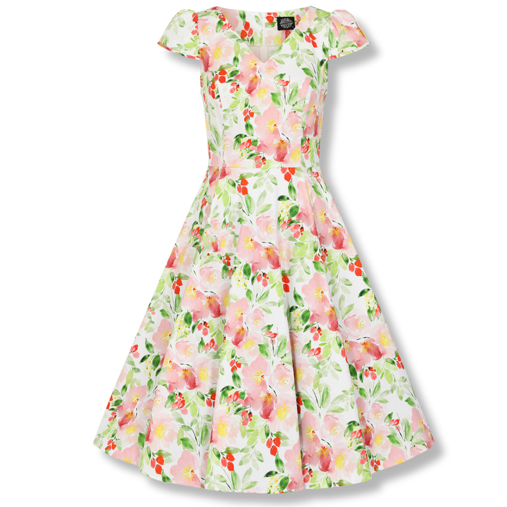Larisa Floral 50s style Vintage Cap Sleeve Swing Dress