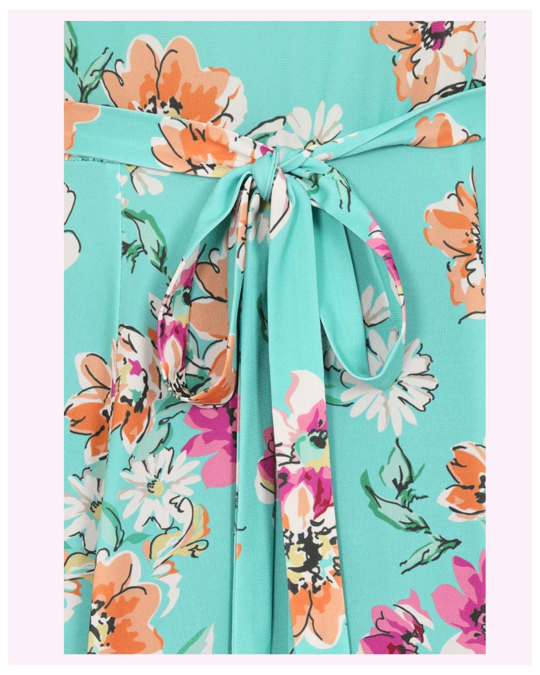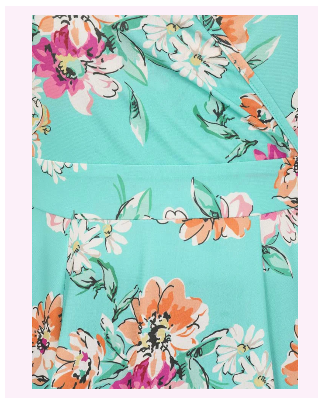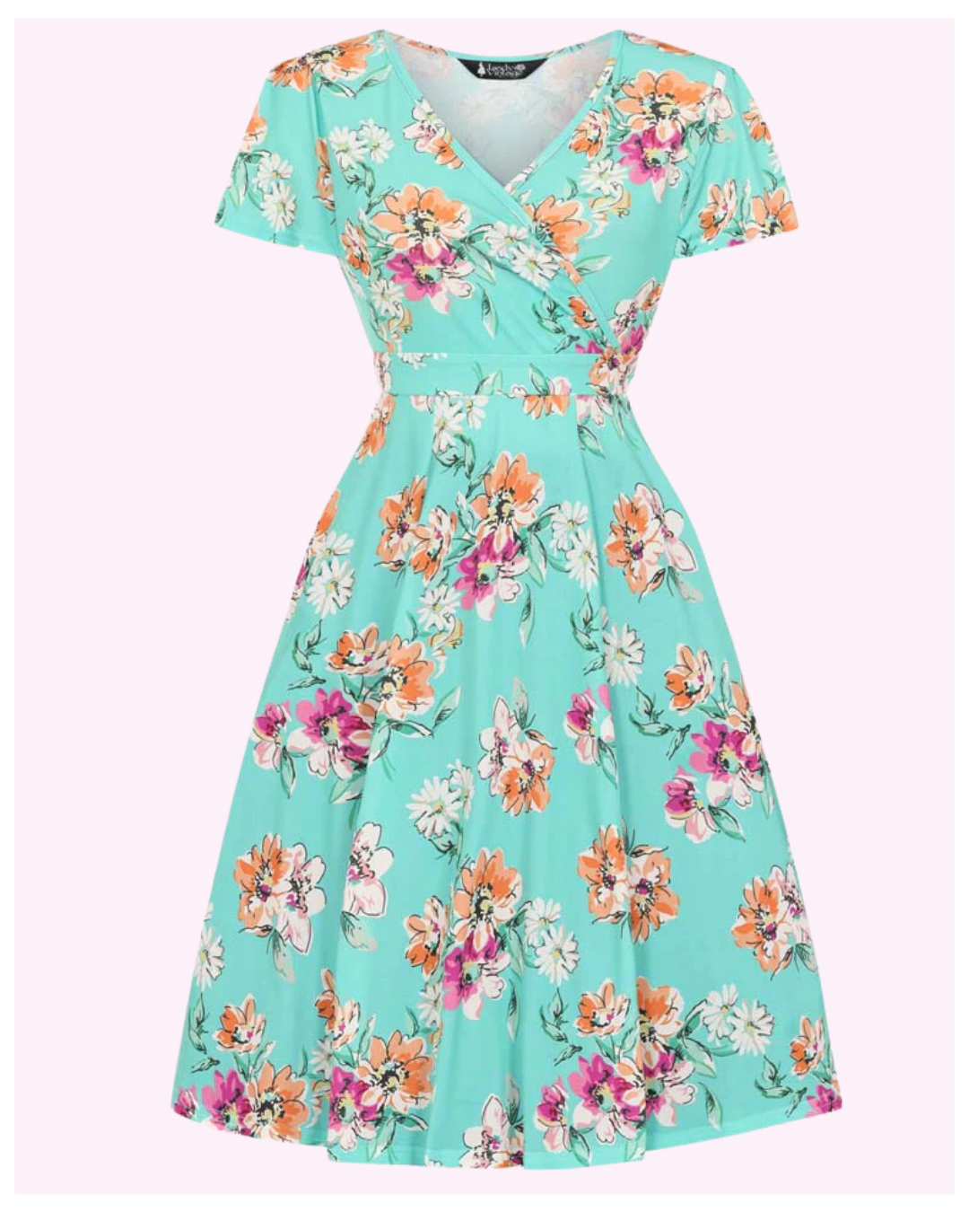Lady V London Lyra Mini Retro 50s Dress - Aquamarine Floral