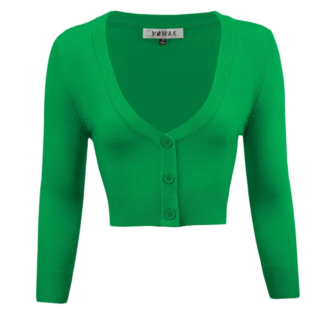 MAK Cropped Bright Green Retro Style 3/4 Sleeve Cardigan