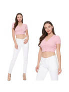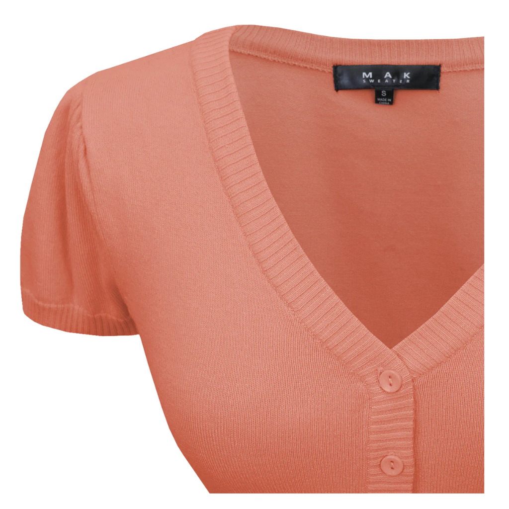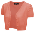 MAK Cropped Deep Coral V Neck Button Down Short Sleeve Bolero