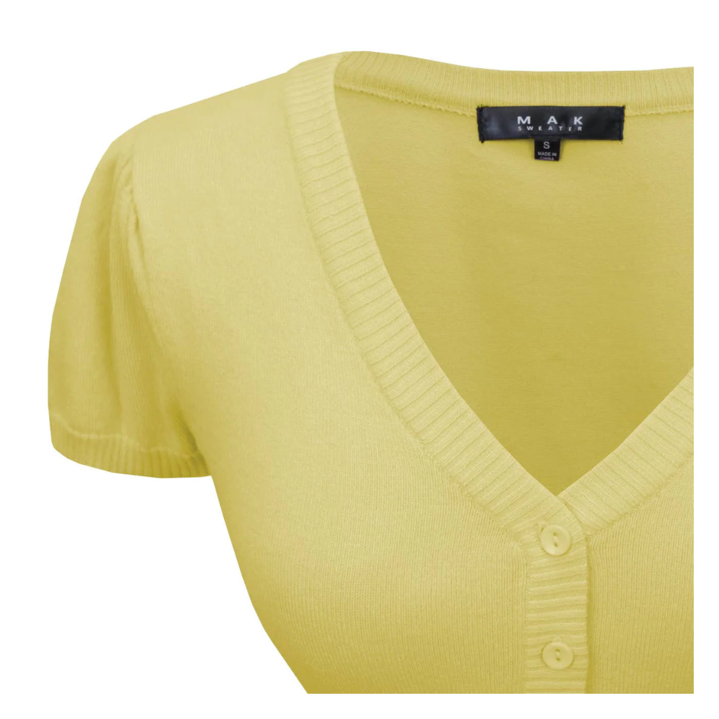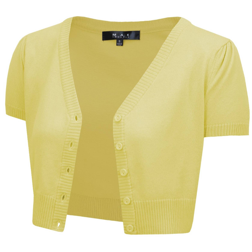 MAK Cropped Baby Yellow V Neck Button Down Short Sleeve Bolero