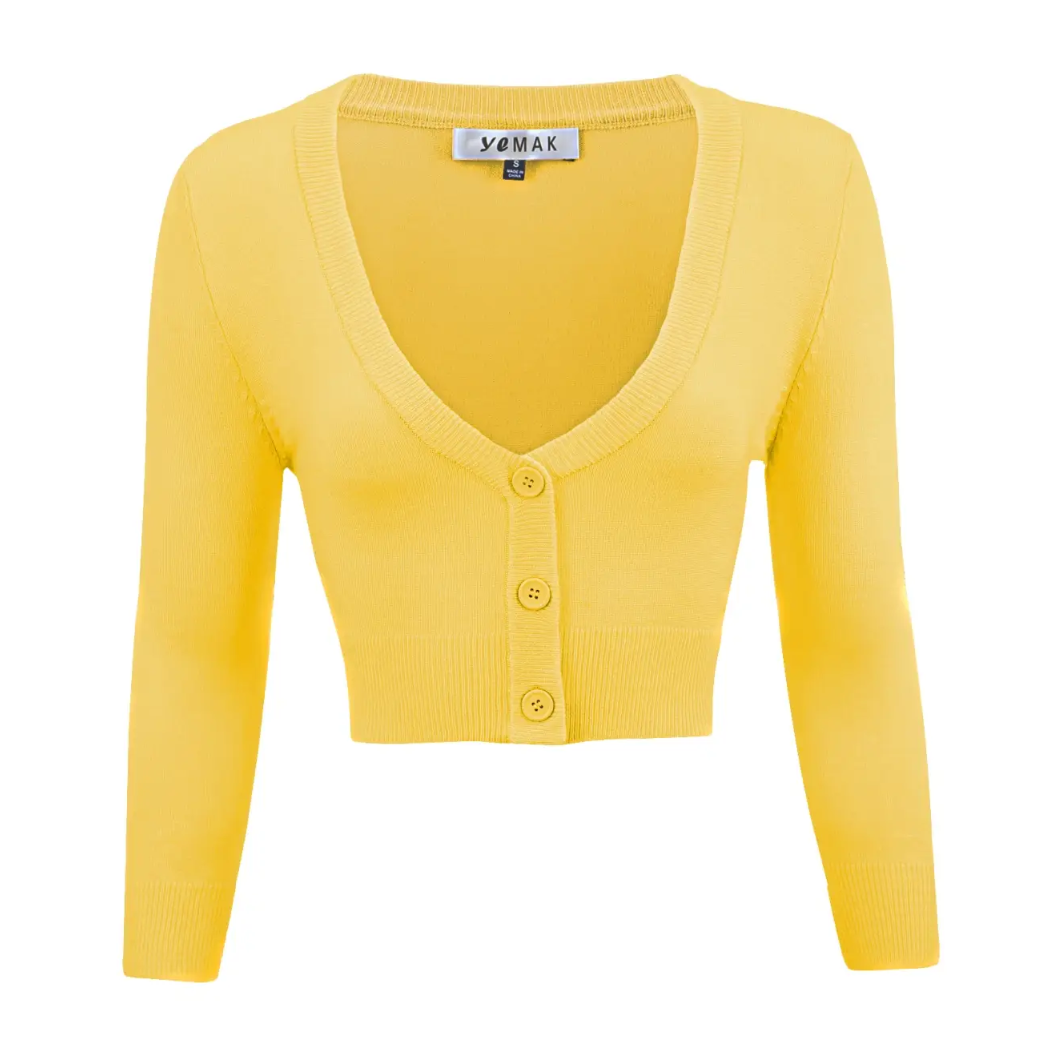 MAK Cropped Custard Retro Style 3/4 Sleeve Cardigan