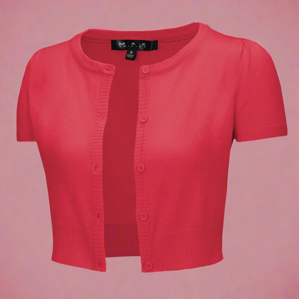 Elevate your vintage style with YEMAK's Short Sleeve Crewneck Knit Bolero!