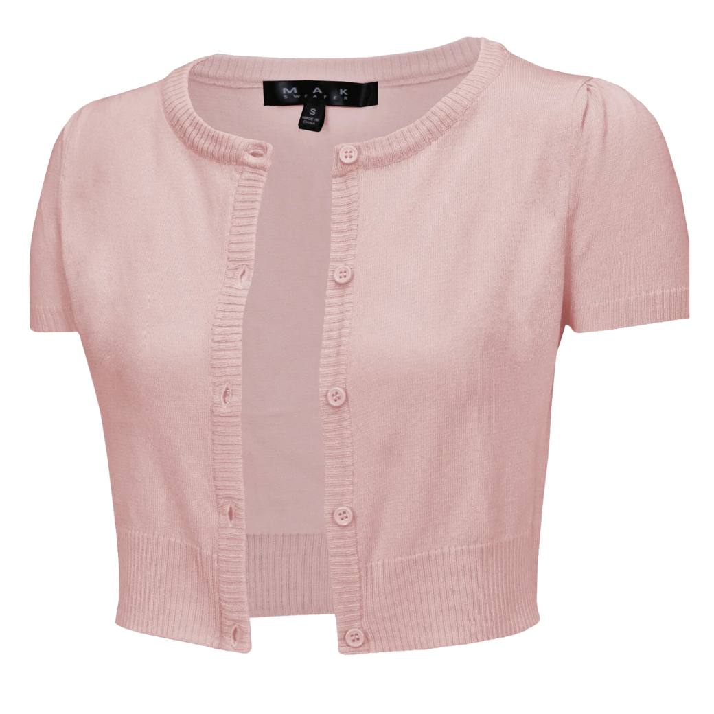 Elevate your vintage style with YEMAK's Short Sleeve Crewneck Knit Bolero!