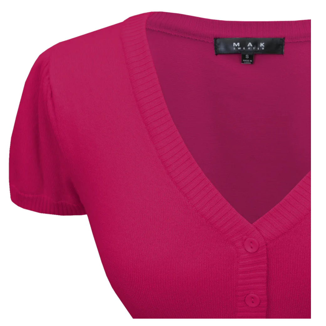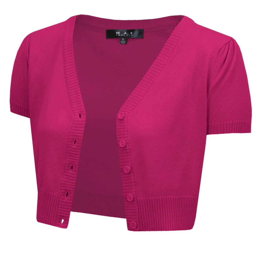 Elevate your vintage style with YEMAK's Short Sleeve V Neck Button down Knit Bolero!