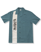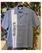 Men's Music Note 50s Style Bowling Shirt in Blue