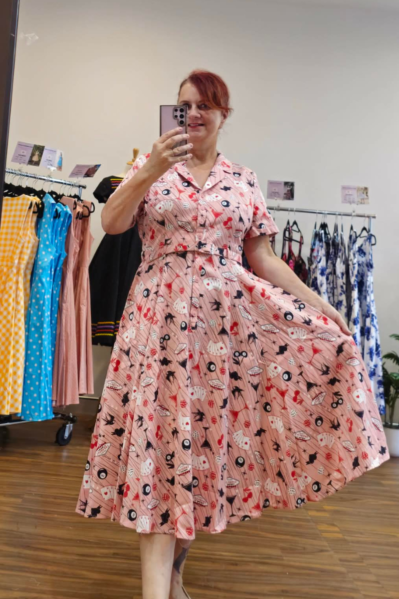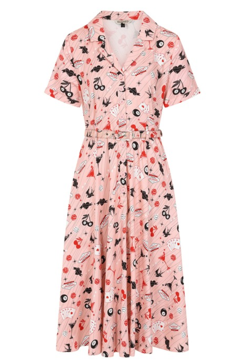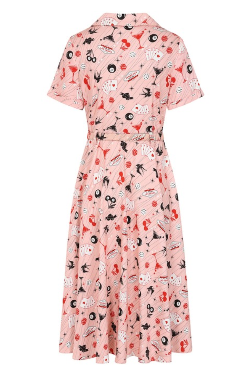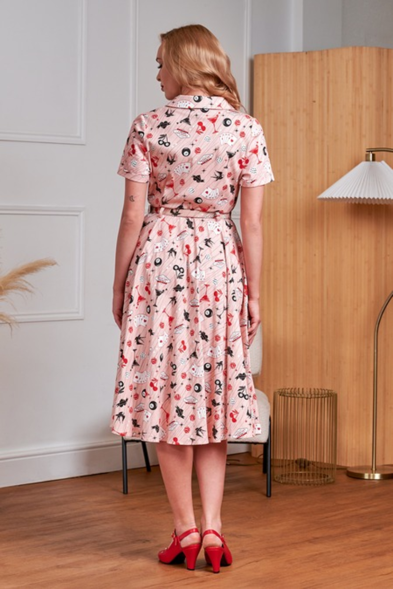 Bella Pink Los Vegas Print 50s Vintage Swing Dress