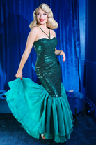 Gilded Teal Green Sequinned Pinup Style Glamour Gown