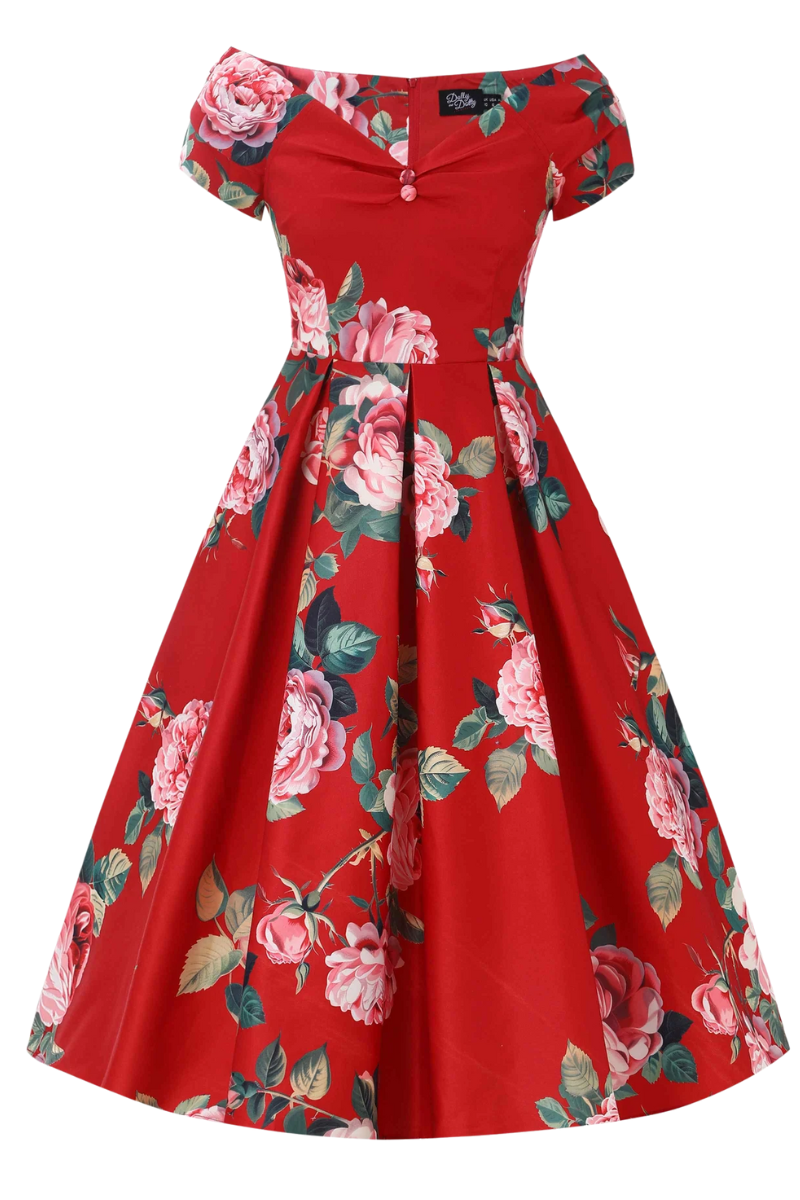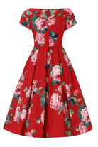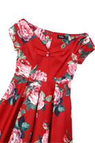 Lily off the Shoulder Red Rose Cotton 50s Vintage Swing Dress
