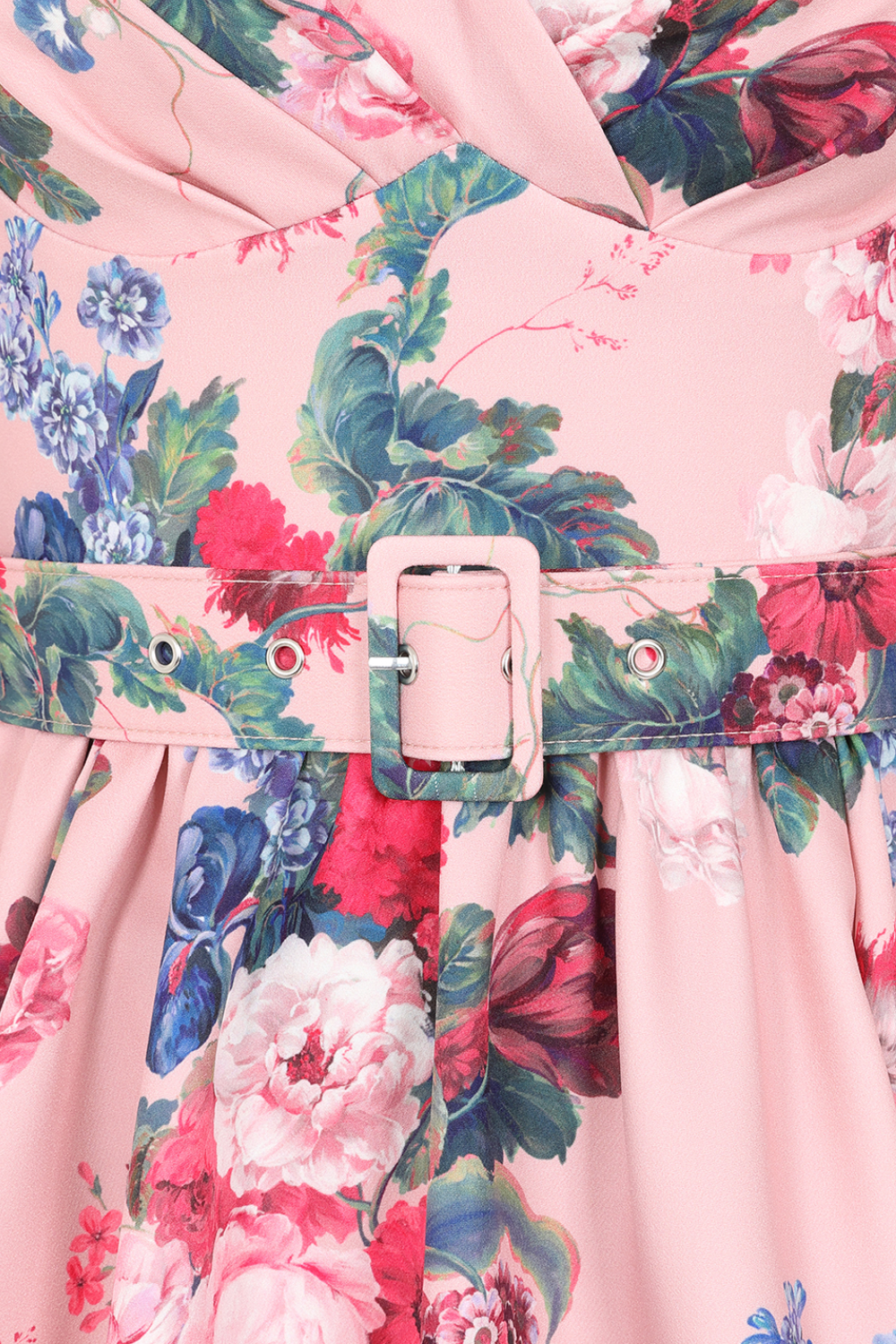 The sweetheart bodice is designed with supportive wide straps and gentle pleating, enhancing the natural silhouette with a touch of vintage allure. A matching waist belt cinches the figure for a flattering hourglass shape before the skirt opens into a full, graceful swing silhouette, offering the iconic movement and romance loved by Hearts & Roses London. Lightweight, flattering, and effortlessly pretty, the Rosabelle Bloom Swing Dress is perfect for garden parties, afternoon teas, and any occasion that calls for a touch of floral magic.