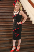 Cayenne Retro 50s Style Pencil Dress with Red Pompoms