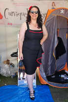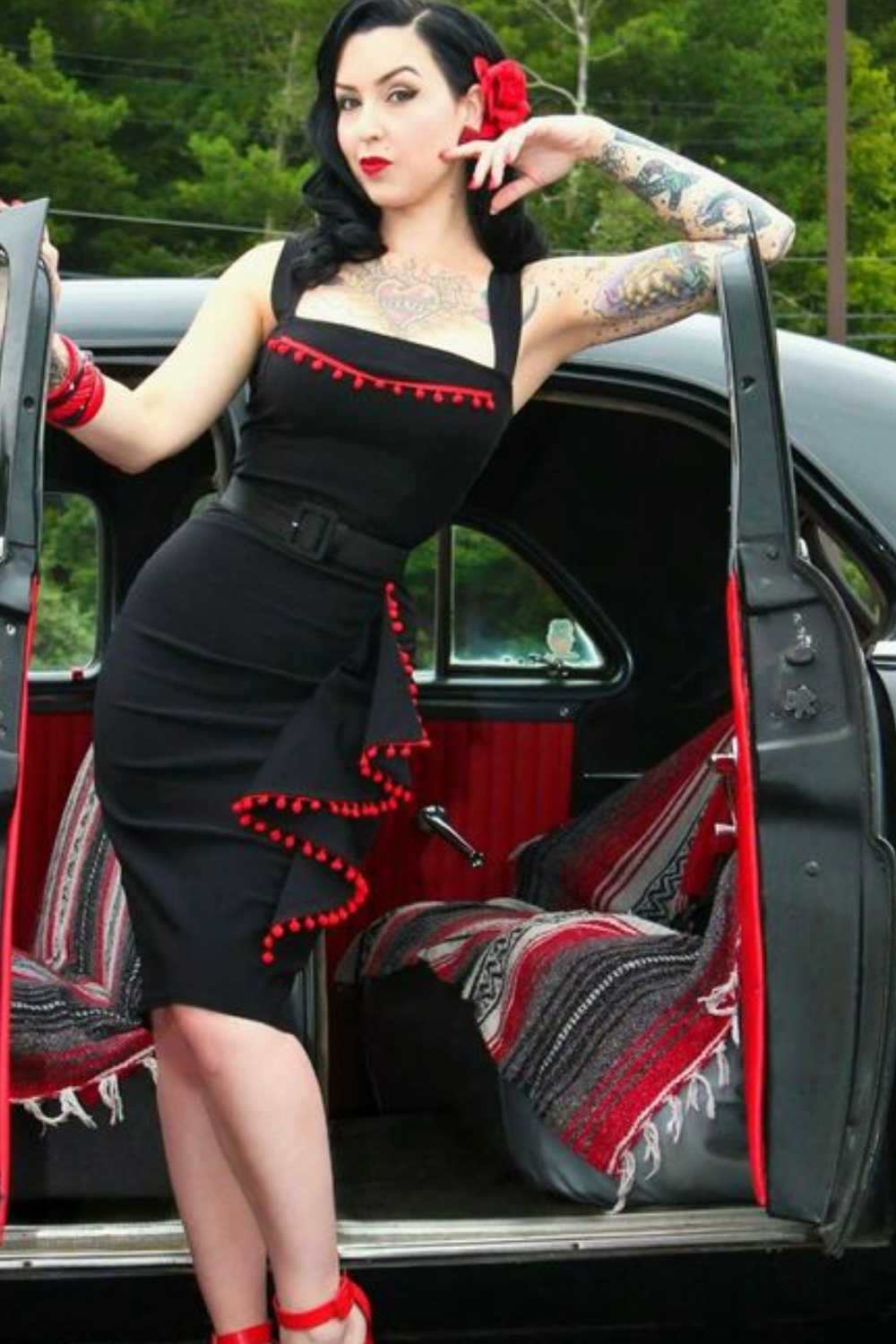 Dazzle in our Cayenne 50s style retro pencil dress with red Pompoms!