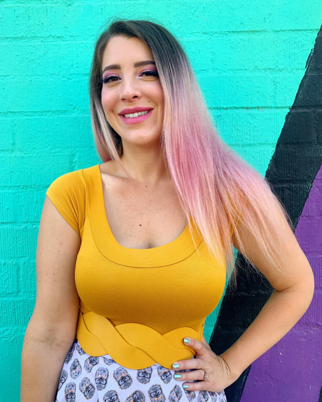 Shown in everyday mustard, this super soft and stretchy top features a figure-flattering wide boat neckline, cap sleeves, and is a pullover style with no zippers or buttons.