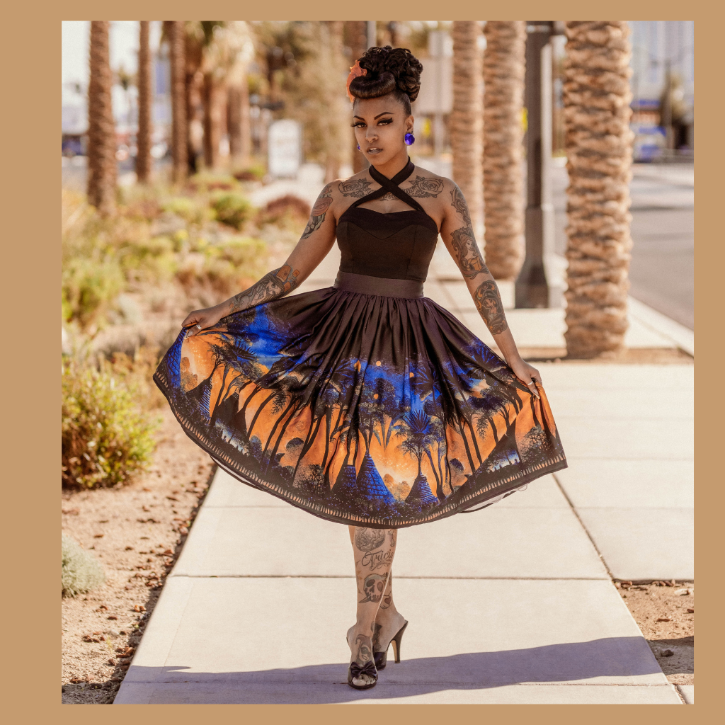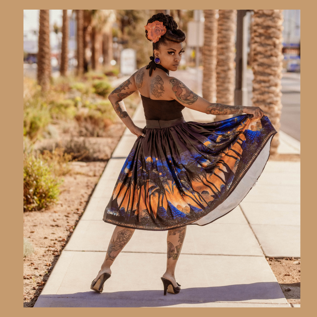 Travel back in time to the lush tropics with this custom Mayan jungle border print full gathered circle skirt.