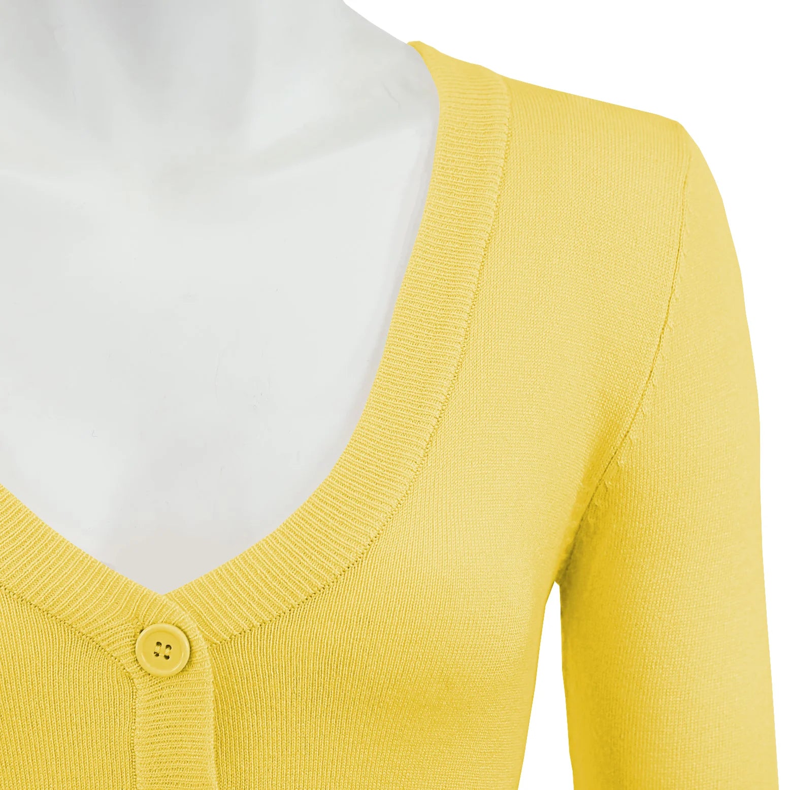 - 14"-15" Crop Length, 3/4 Sleeves, Button Down, V-Neck Bolero Shrug Knit Cardigan Sweater for Woman that Hits Upper Waist Point