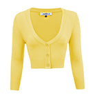 MAK Cropped Baby Yellow Retro Style 3/4 Sleeve Cardigan - Plus Size
