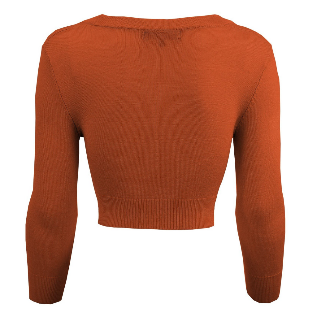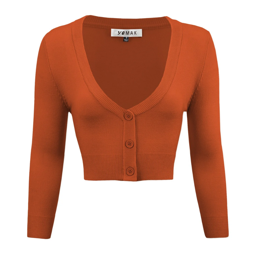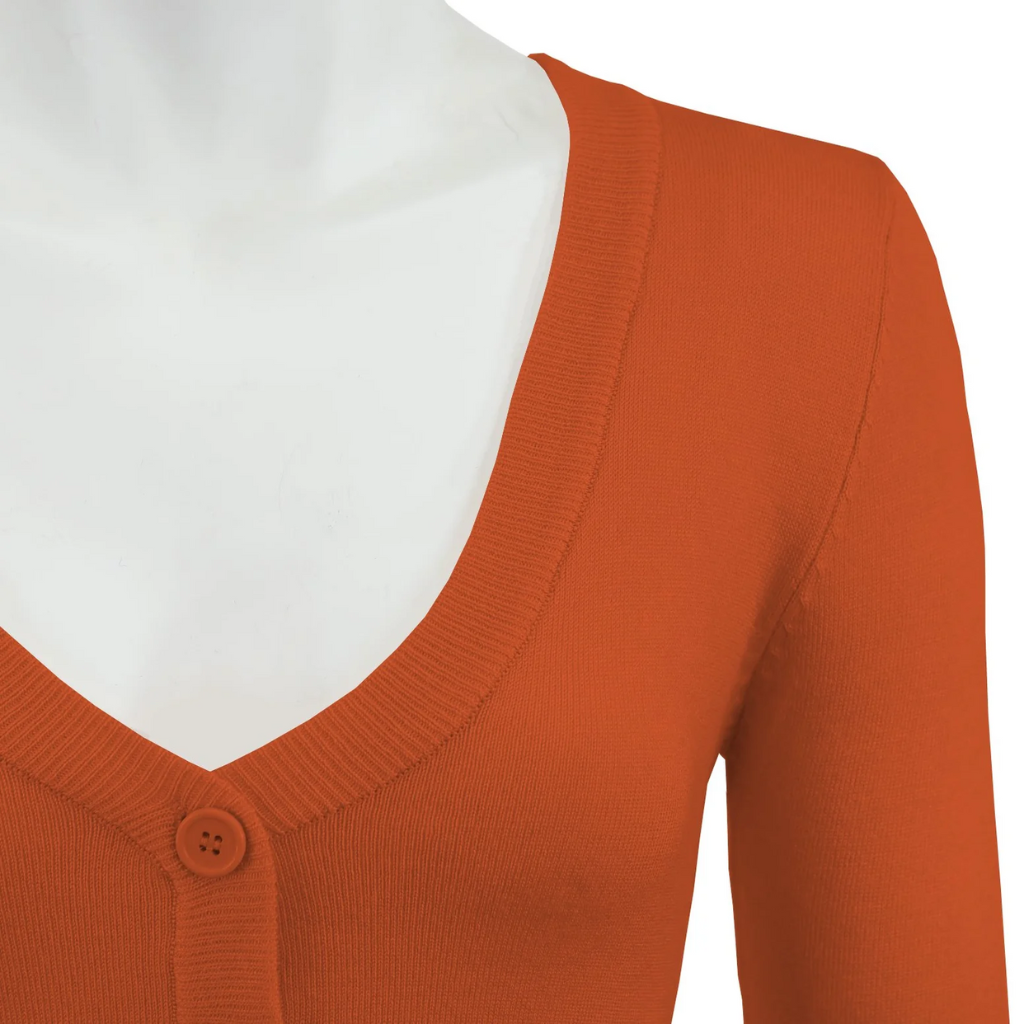 MAK Cropped Dusty Orange Retro Style 3/4 Sleeve Cardigan
