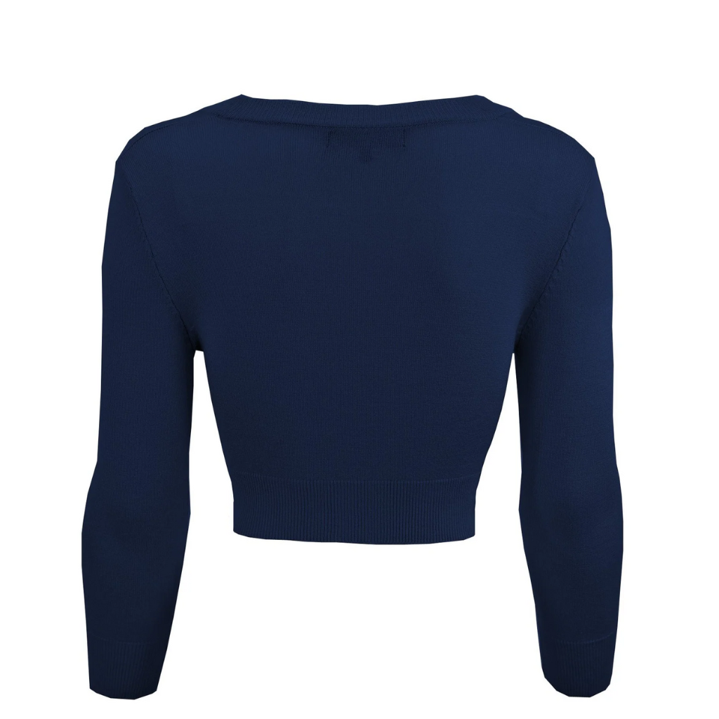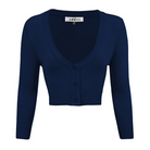 MAK Cropped Navy Retro Style 3/4 Sleeve Cardigan