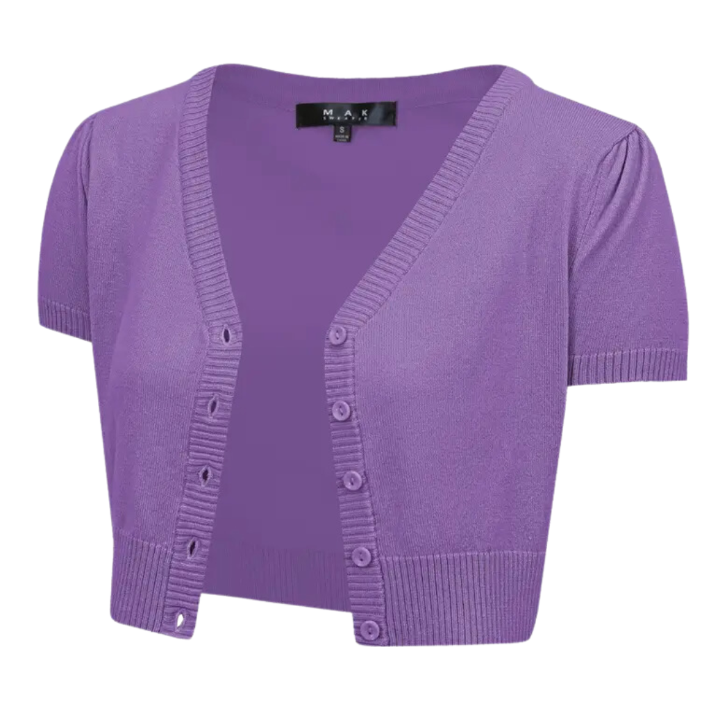 MAK Cropped Blueberry V Neck Button Down Short Sleeve Bolero
