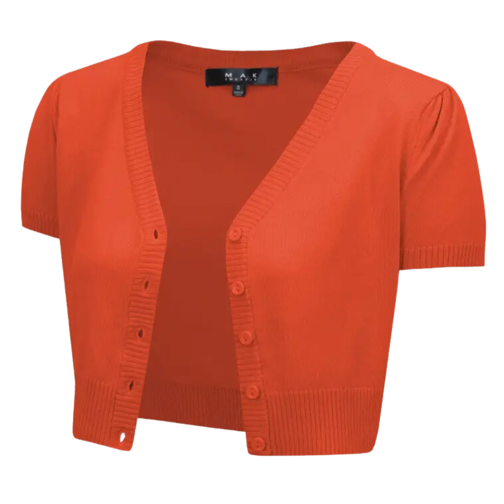- 14"-15" Crop Length, Puffed Cap Short Sleeve, Round Neck, Bolero Knit Cardigan Sweater that Hits Upper Waist Point.