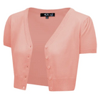 MAK Cropped Peach Beige Button Down Short Sleeve V Neck Bolero - Plus Size