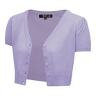 P/S MAK LILAC Cropped V Neck Button Down Short Sleeve Bolero - Plus Size