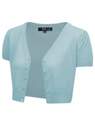 MAK LIGHT BLUE Cropped V Neck Button Down Short Sleeve Bolero
