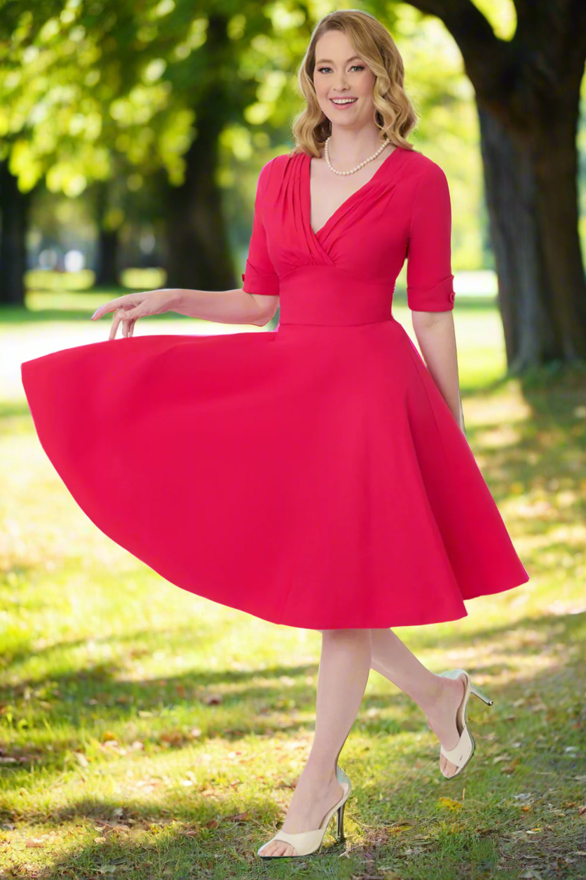 Delores Hot Pink 50s Vintage Style Swing Dress