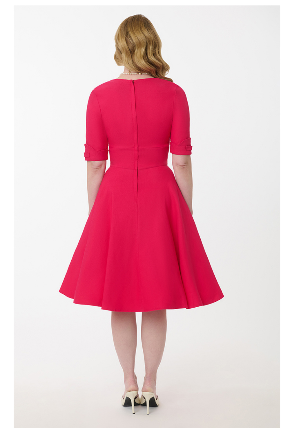 Let Delores get domestic with you, darling. A hot pink swing dress rich in 1950s vintage appeal fresh from Unique Vintage, Delores is unparalleled!