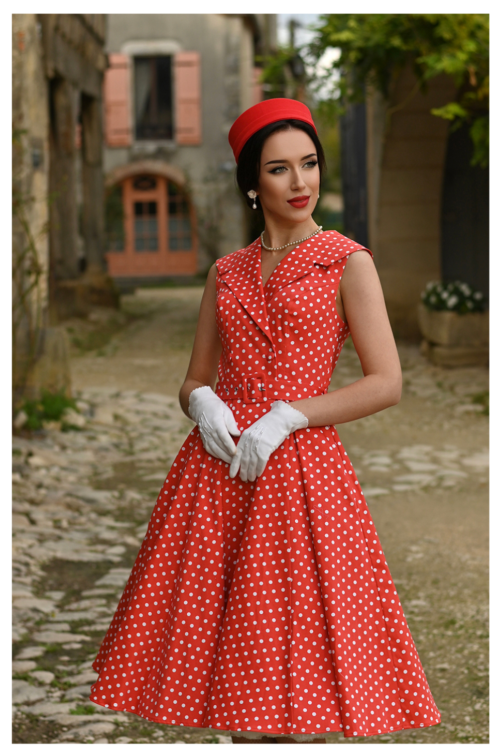 Hannah Red Polka Dot Sleeveless 50s Vintage Style Swing Dress