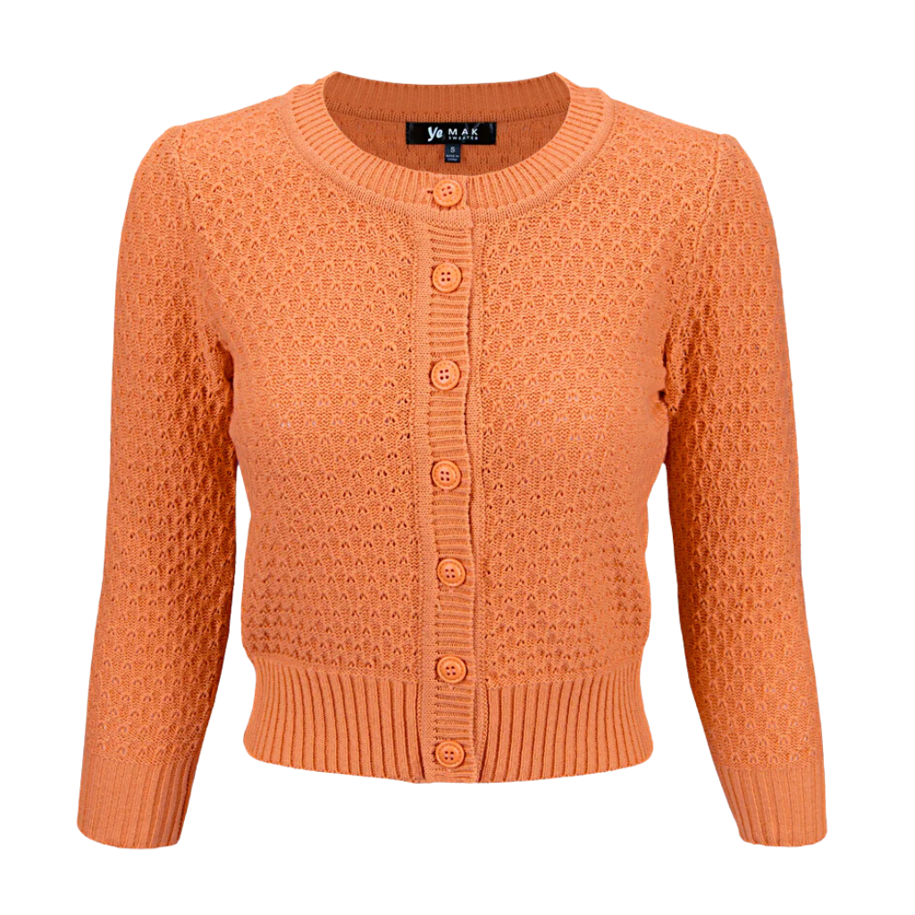 MAK 3/4 Sleeve Crewneck Knit Cotton Cropped Cardigan - Light Orange