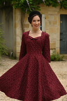 Thea Burgundy 50s Vintage Style Swing Dress with Matching Bolero