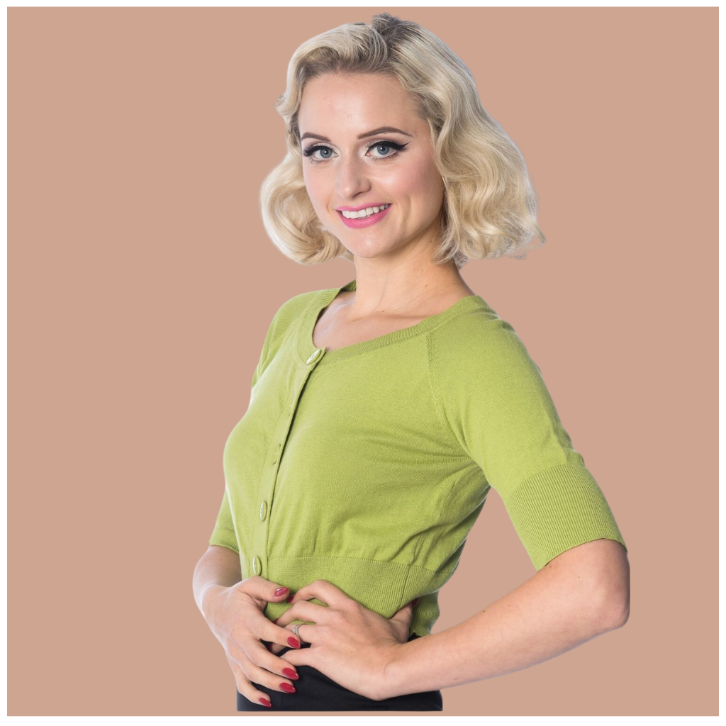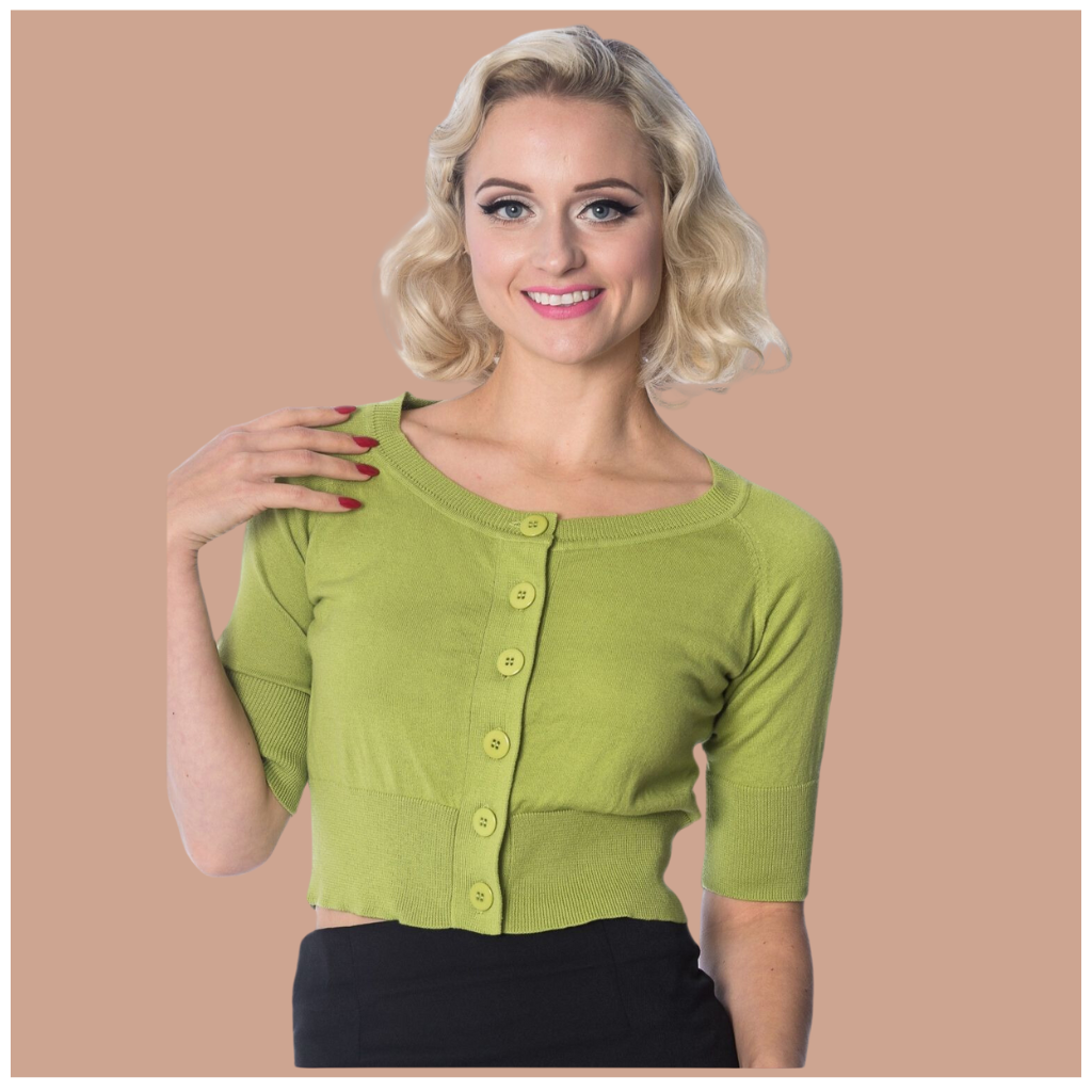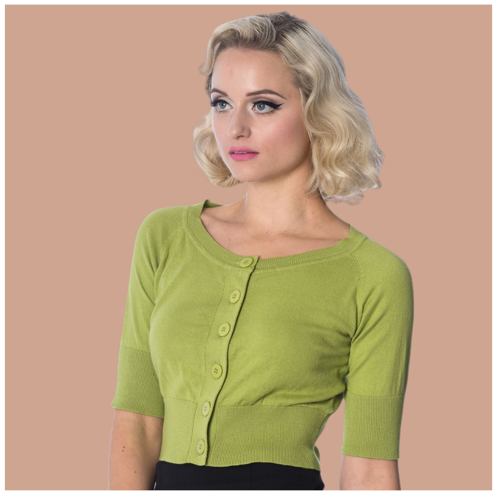 Raven 50s Style Half Sleeve Retro Caridigan - Apple Green