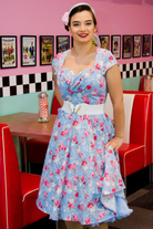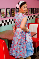 Sheridan Kate blue vintage floral print rock and roll dress is a classic retro dress with full circle skirt.