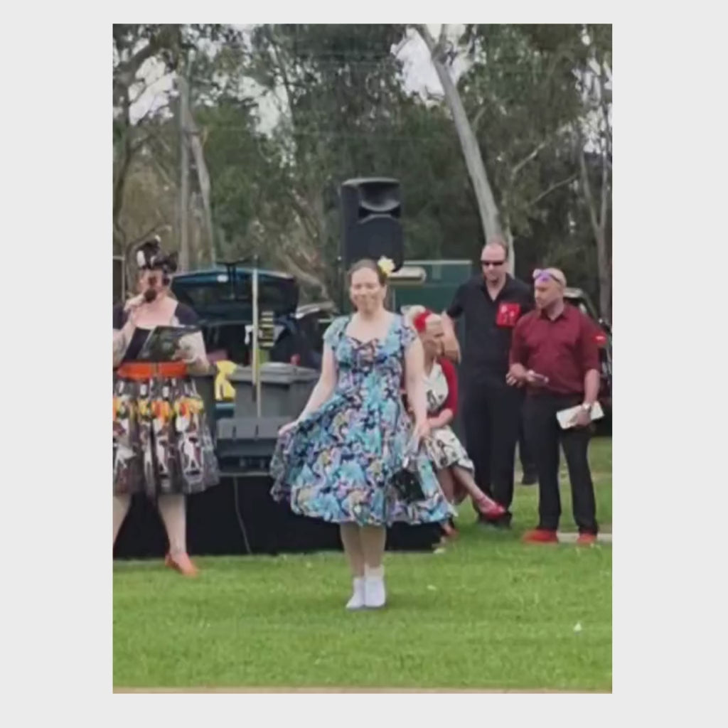 Step back in time with the Sheridan Kate Navy Floral dress, a playful twist on classic 50s style.